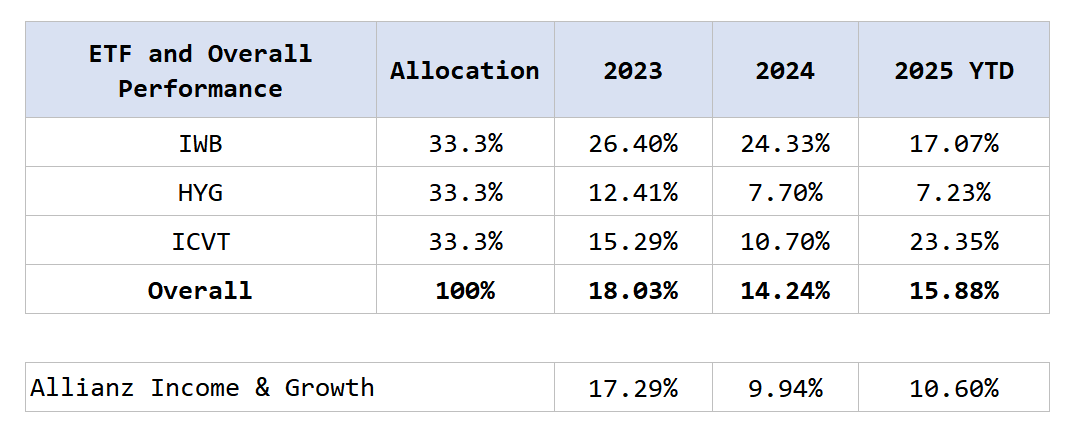 Per Allianz site here are the Allianz Income and Growth total returns: