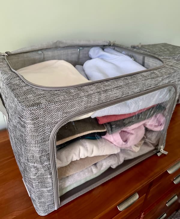 And the side zippers make them so easy to access and not have to pull everything out of the top to get to what you’re looking for. They’re perfect for storing holiday decor, seasonal clothing, and SO much more. Plus, they’re stackable, lightweight, and fold up SO easily when not in use!