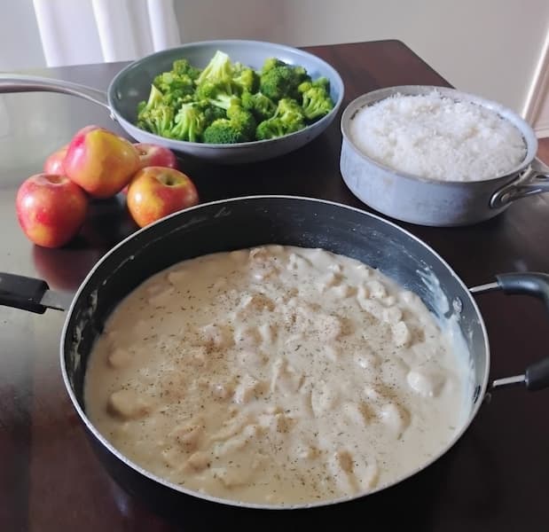 Ingredients for Dinner with Creamy Chicken Gravy over Rice