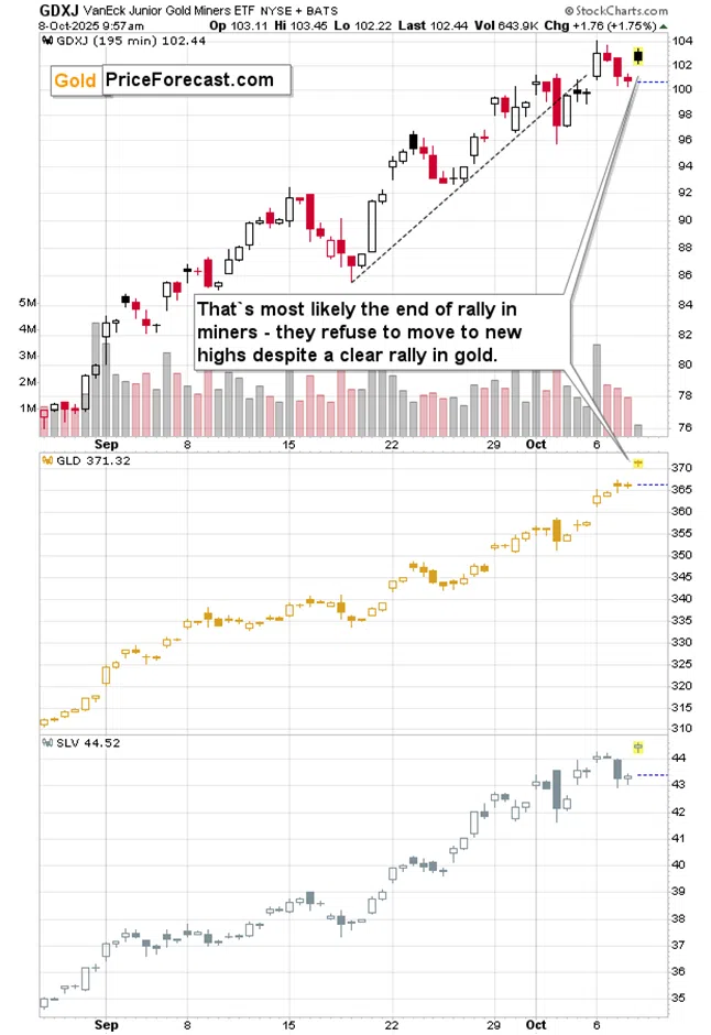 Gold price clearly moved higher today, and while miners and silver moved higher as well, mining stocks failed to move to new highs.