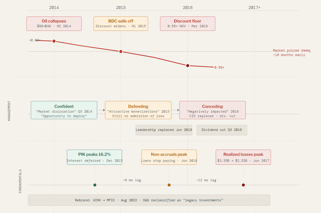 I thought I will provide some glimpse if you had invest in a potentially high yield private credit fund today, that mirrors the experience of MFIC/AINV in 2013.