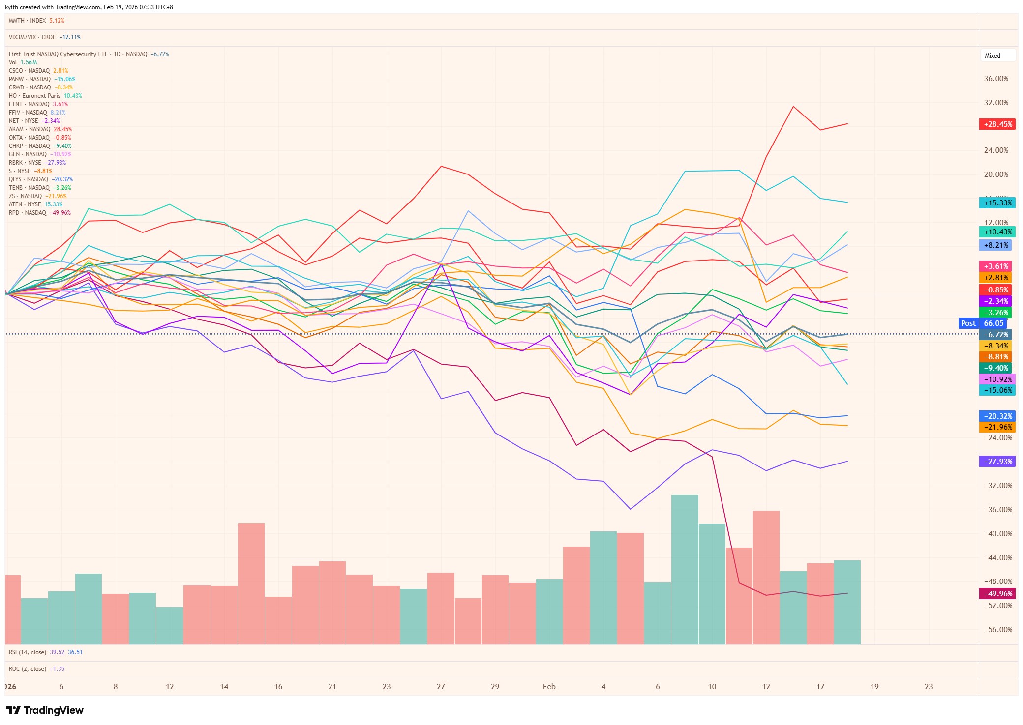 I took the components of the First Trust NASDAQ Cybersecurity ETF and lay out their 2026 performance: