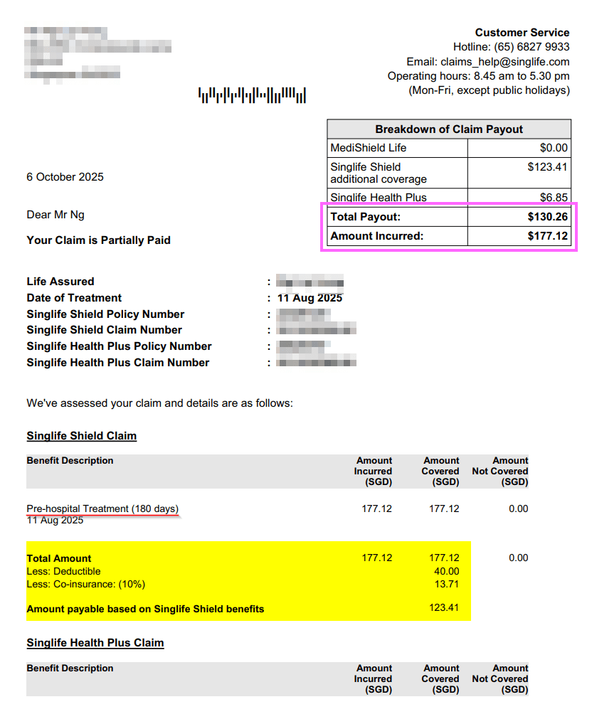 So Singlife will reimburse me $123.3 + $6.85.