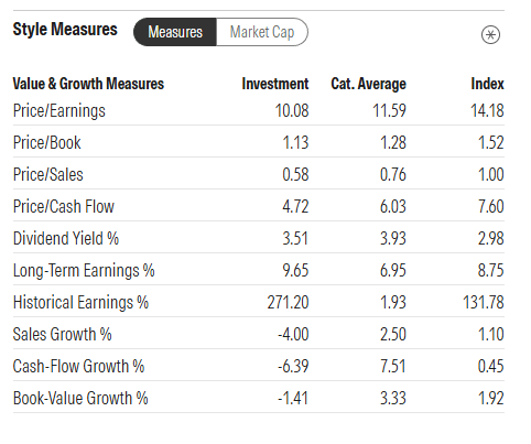 The price earnings is 10 times compared to the benchmark index of 14 times. This despite AVDV going up 41% this year. You also detect the historical earnings growth of 271% (a large part due to the USD weaken) which is better than the index historical earnings growth off 131%. But what we are concern about is the long term earnings growth and you get a batch that is still projected to grow 9.6%.