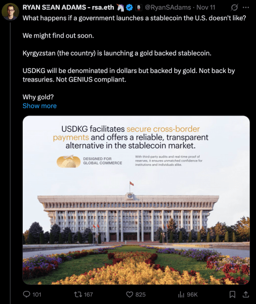 Kyrgyzstan surprised the stablecoin world with $USDKG, a gold-backed dollar coin that comes with a $50M first mint.