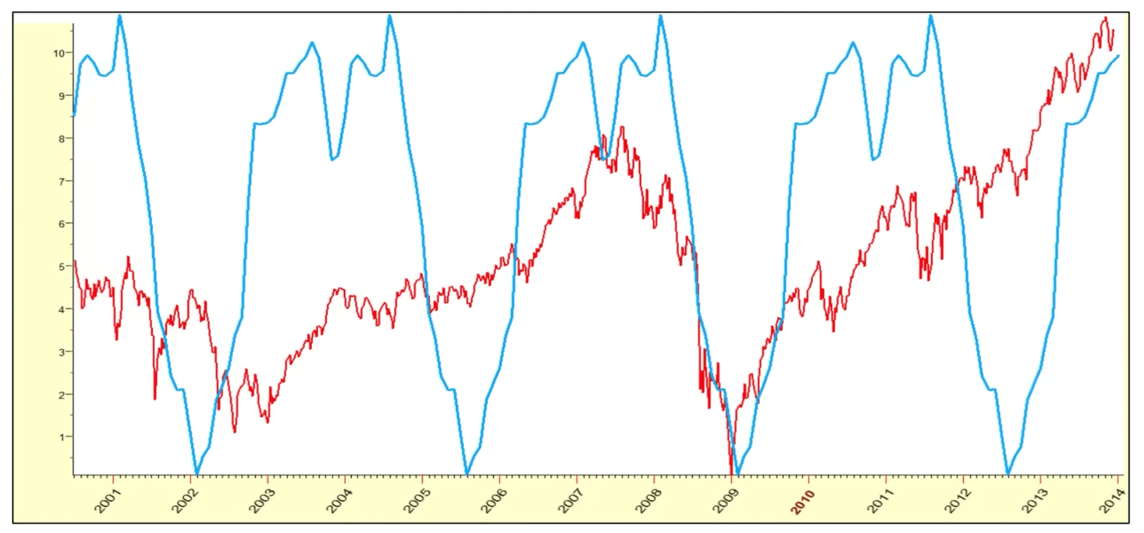 Which means that we can link money supply cycle work to the Dow Jones Industrial Average.