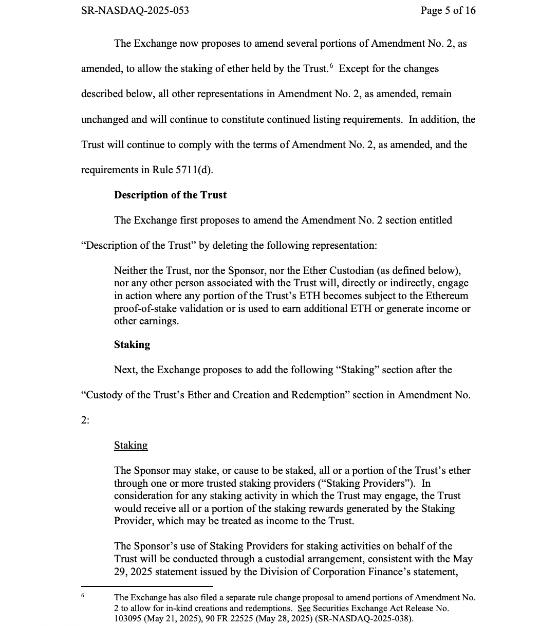 The Nasdaq stock exchange filed an application with the US Securities and Exchange Commission (SEC) on Wednesday on behalf of BlackRock to add staking to the asset manager’s iShares Ether (ETH) exchange-traded fund (ETF).