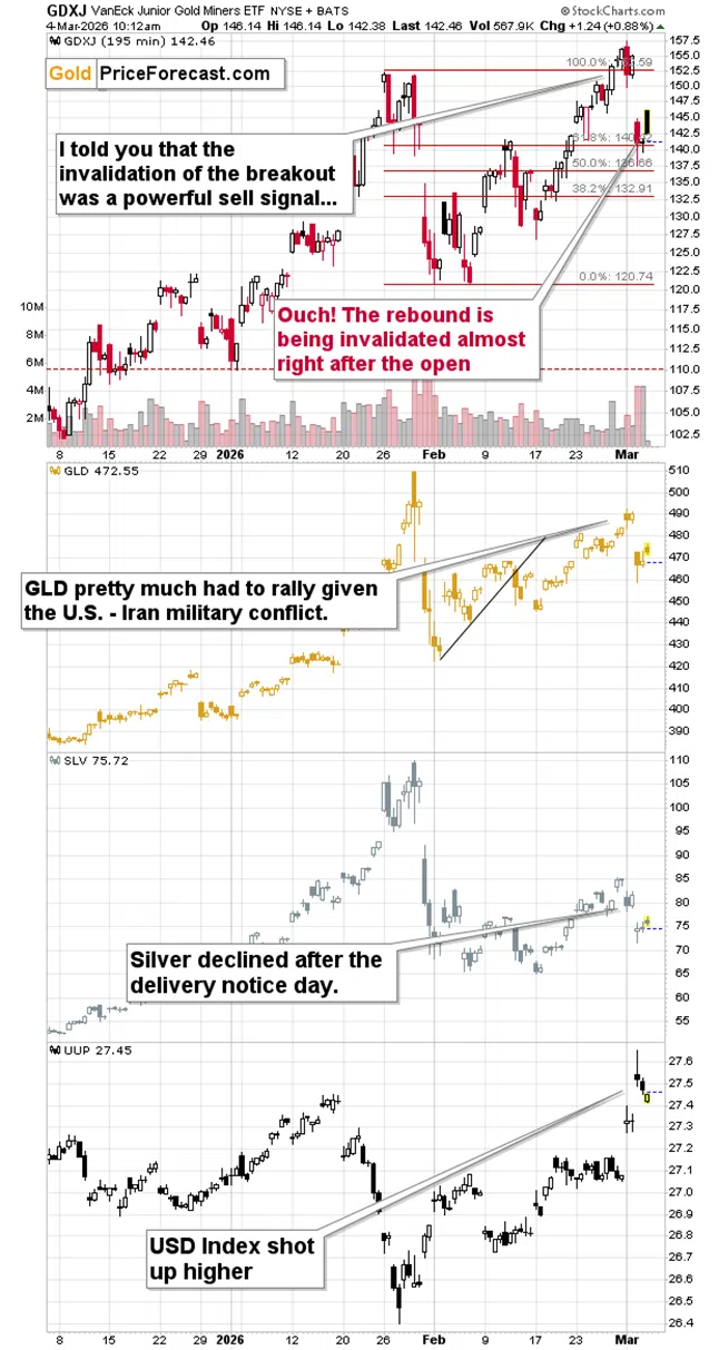 The GDXJ moved below its mid-Feb. high after failing to hold above