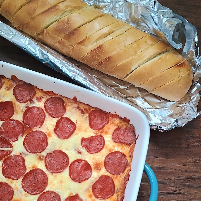 Bake the bread in the oven with the Spaghetti Pizza for the last 10-15 minutes, or until the bread’s crust is crispy (but the inside is still soft and yummy!).