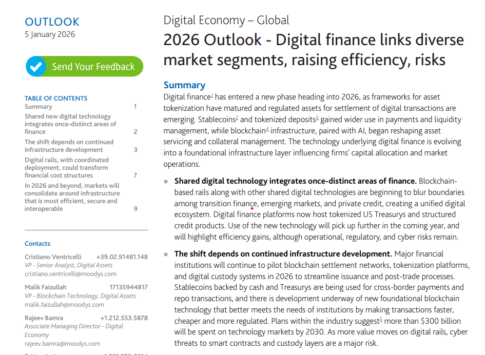 Still, Moody’s stressed that the transformation is far from risk‑free. As more value moves onto “digital rails,” the report warned that smart contract bugs, oracle failures, cyberattacks on custody systems and fragmentation across multiple blockchains could create new forms of operational and counterparty risk.