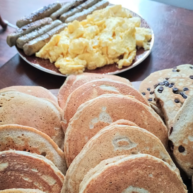 Whole Wheat Chocolate Pancakes with Chicken Sausage and Scrambled Eggs ($10 Family Dinner)