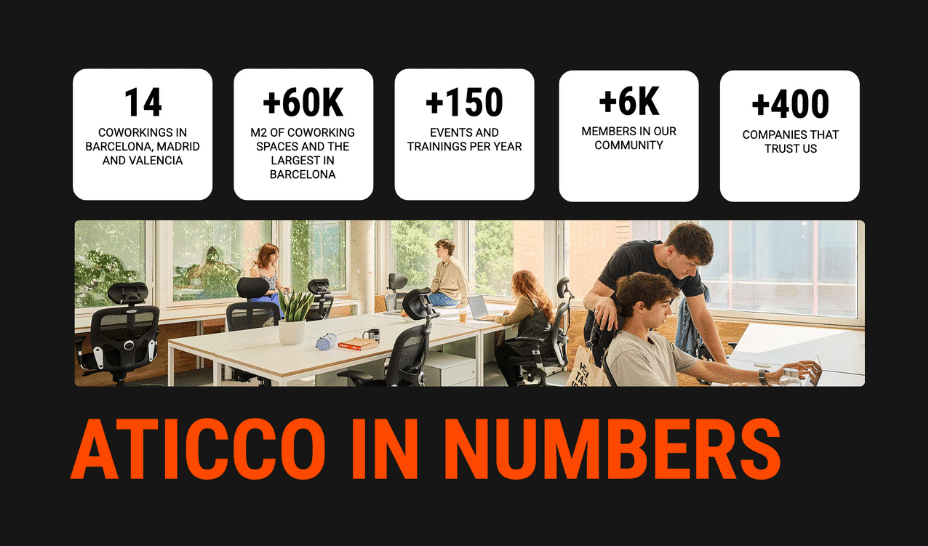 With 14 locations across Barcelona, Madrid, and Valencia, more than 60,000 m² of workspace, and a community of 6,000 members, Aticco offers more than just offices. It offers a thriving ecosystem. Over 400 companies already trust Aticco to design the spaces their teams need, proving that coworking has evolved into a cornerstone of the modern business landscape.